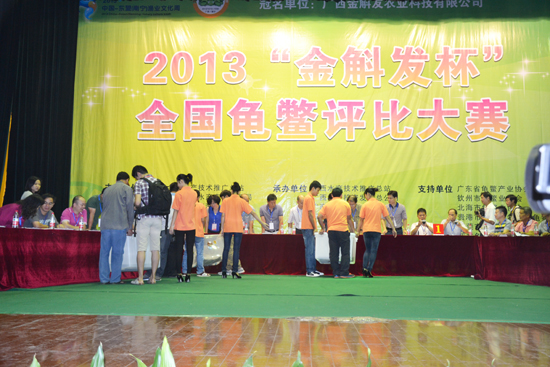 王熙成总经理(右一)担任“金斛发杯”全国龟鳖评比大赛评委